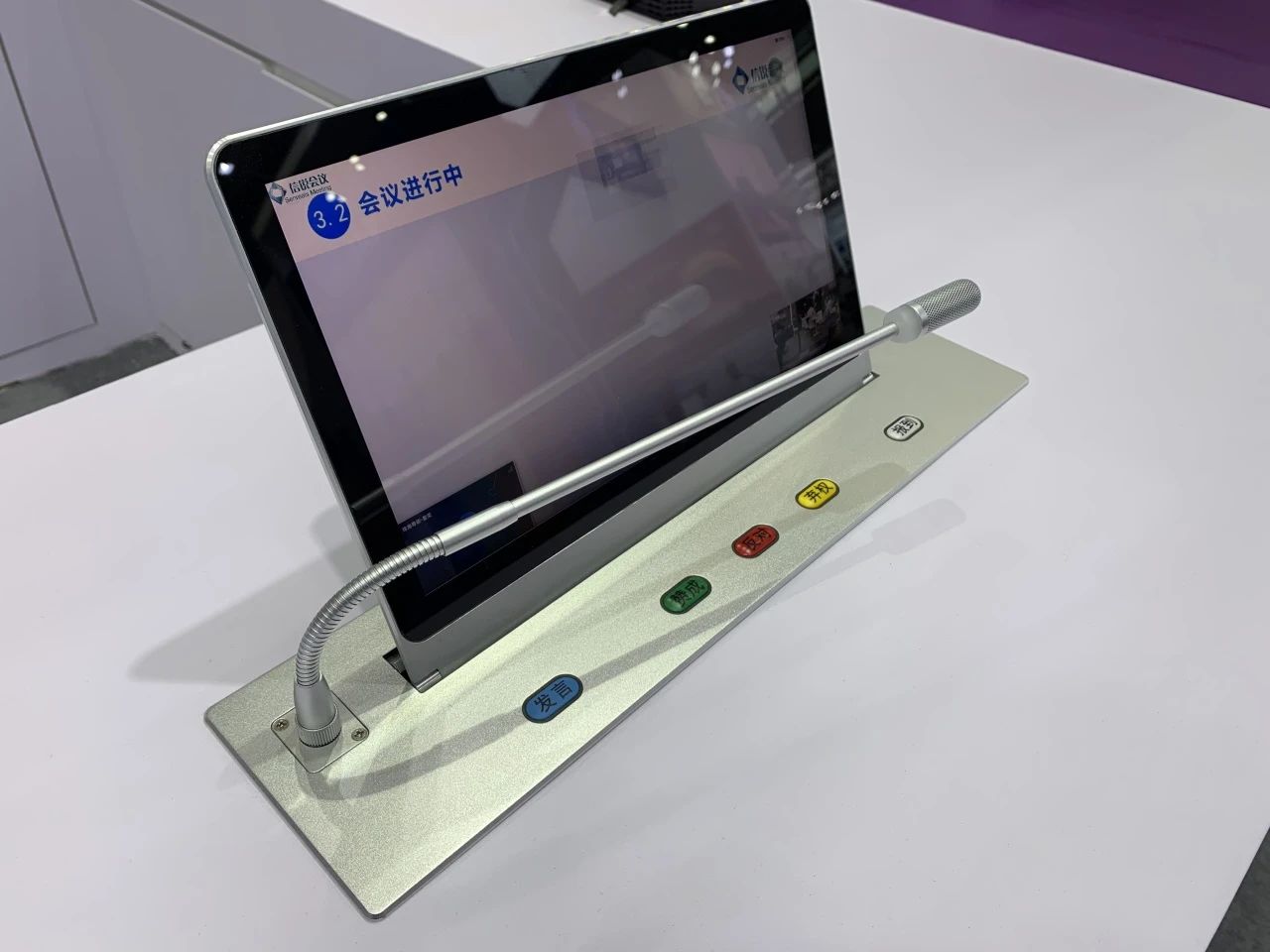 PHLX升降式表决单元可以实现同屏、注释、切片、呼叫服务等功能,其中配备的是触摸式的升降一体机,这款设备具备十分人性化的设计,它的升降角度可以手动调节,降屏时还能自动断电回到直立的状态,液晶屏下降后可以自动关门,噪声也是极低的。