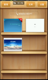 登录之后就可以在“幻灯片列表”界面中点击“文库”进入文库功能,在文库中可以查看到用户存放在云端的幻灯片,可以选择下载到本地浏览或者演讲用。