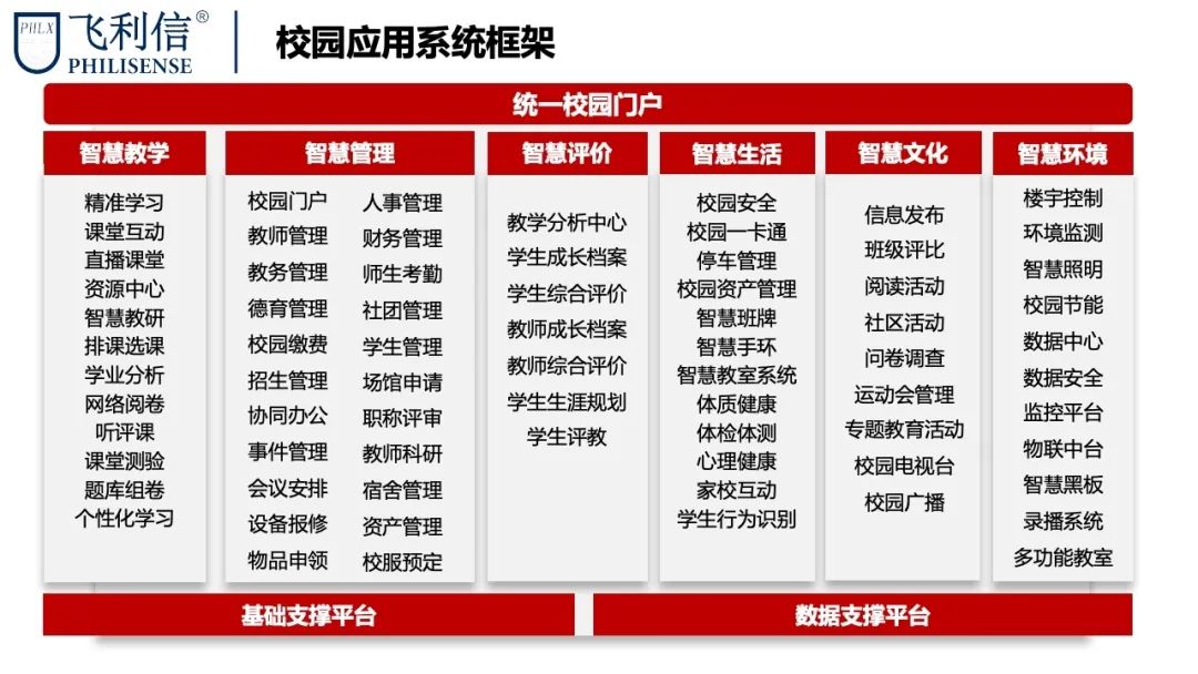 此次发布的“面向精准教学和高效校园管理的智慧校园建设方案”将建成教育管理、学校教学和公共服务应用功能全覆盖,各级各类用户全覆盖的智慧校园,涵盖教育大脑、智慧教育云平台、校园数据中心、计算机网络系统、多媒体教学系统、智慧图书借阅管理系统、云网络教室及语言教室、考务系统等智慧校园与智慧教室各类终端及智能化系统建设方案,实现精准教学和高效校园管理。