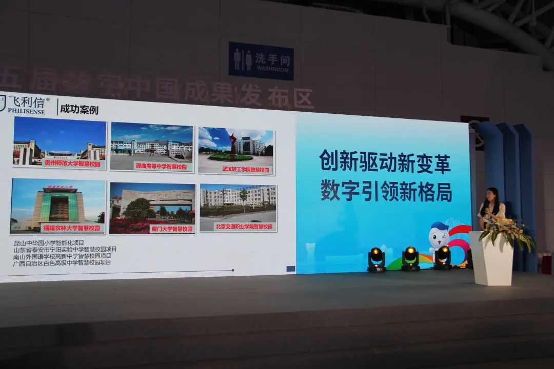7月22日,飞利信亮相第五届数字中国建设成果展览会。在这场全国最高级别的数字中国建设最新成果展示平台上,飞利信发布“面向精准教学和高效校园管理的智慧校园建设方案”,与在场的众多科技界、教育界权威专家和专业观众分享了飞利信在智慧教育领域的精彩内容。