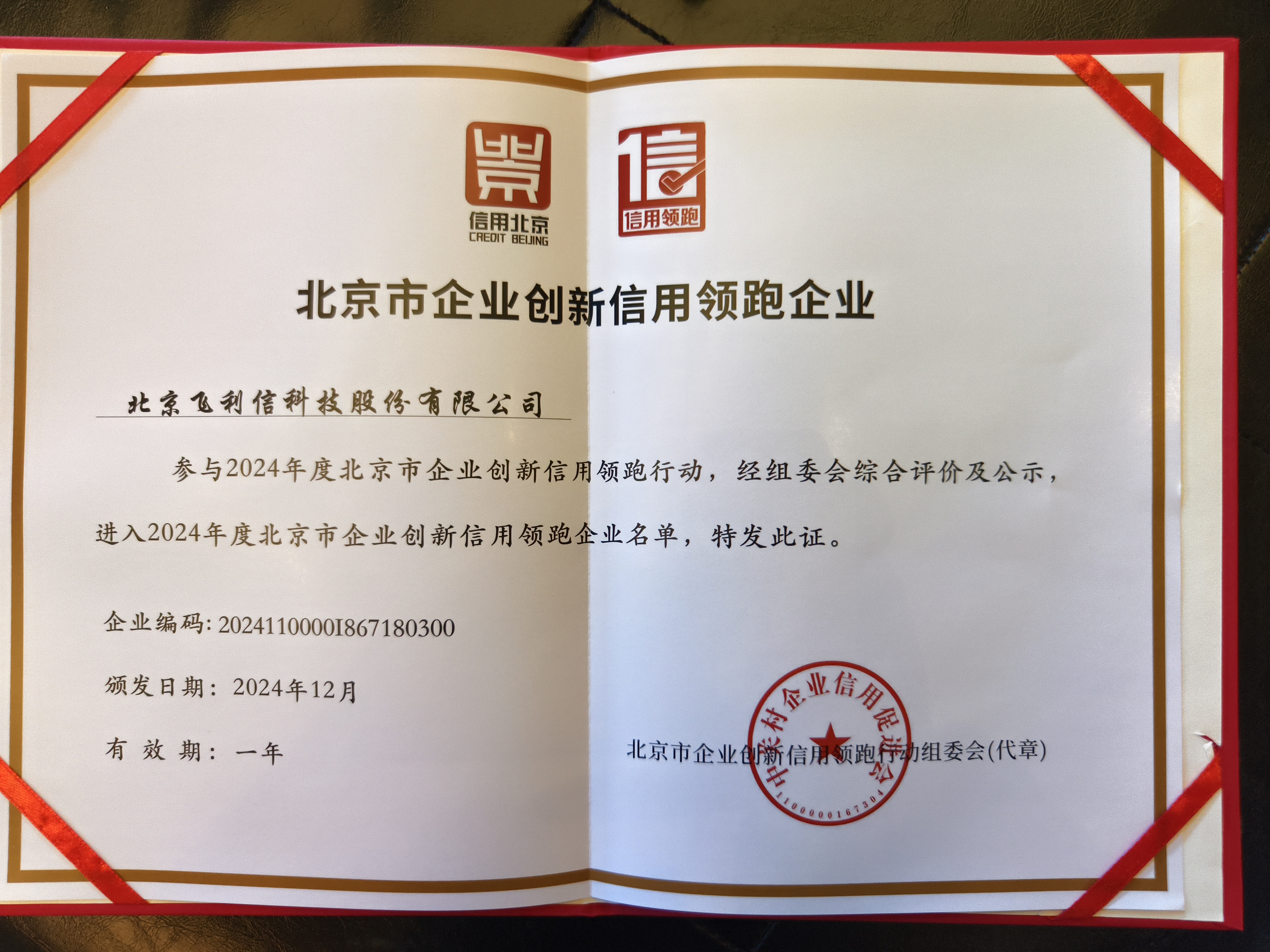 此次荣誉是对飞利信在科技创新、诚信经营方面所取得成绩的高度认可,也标志着公司在推动行业进步和社会责任履行上的又一里程碑。此次被评为北京市企业创新信用领跑企业,不仅是对飞利信过往努力的认可,更是对未来发展的激励和鞭策。