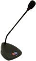 话筒按钮带有红、绿双色发光指示灯,绿灯闪烁表示申请发言,红色常亮表示话筒打开