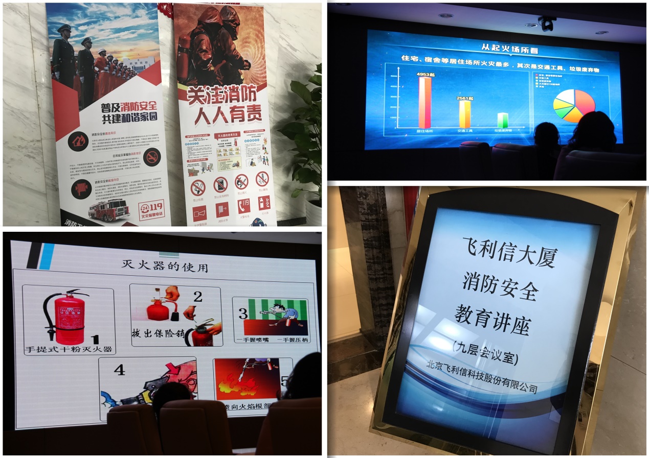 飞利信是海淀区的高新技术企业,飞利信大厦内设有市级工程实验室、物联网产品实验室、安全产品开发实验室等,研发人员多,操作设备多,针对这些特点,公司完善各项检查巡检制度,明确责任人,明确管理标准。并对消防设施、设备、电器线路设施制定了每日、周、月、季度、年的定期检查,对发现的安全隐患及时进行整改,从而有效的杜绝了安全隐患。同时,公司在公共安全设施方面,严格按照国家有关规定配置灭火器材、设置消防安全标志,并定期检查、维护,确保消防器材设施完好、有效。