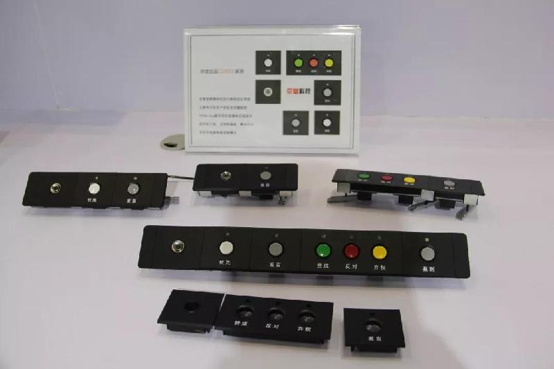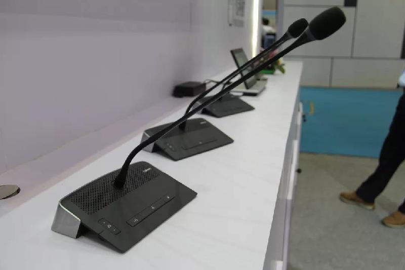 本次展出的京堂会议系统涵盖有线、无线讨论、有线表决、无线同传等产品。其中,为人大常委会定制的多项表决及测评系列产品最受用户欢迎。京堂品牌会议系统接受用户定制服务,包括面板大小、文字印刷、话筒长度等等。