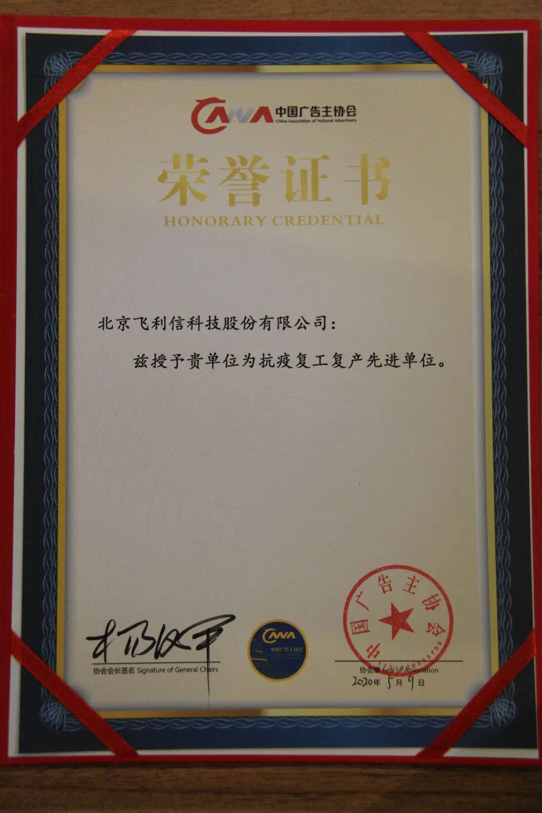作为中国广告主协会的副会长单位,新冠肺炎疫情发生以来,飞利信积极响应国家号召,发挥组织优势和技术优势,团结带领广大科技工作者积极投身疫情防控的人民战争、总体战和阻击战,在疫情防控和复工复产工作中发挥着重要作用。