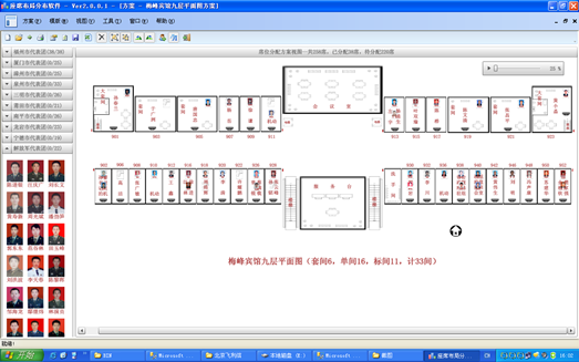 对酒店的基本信息进行维护,包括酒店名称、地址、联系方式、住房情况、空房情况进行登记、修改、删除和查询等。系统提供导入酒店及房间信息的功能,可以导入楼层的房间布局平面图,标记房间号、房间的朝向、楼层等信息。酒店的信息可以从历史会议中导入相关的酒店信息,并可以手工调整。结合席次软件可以制定对与会人员的住宿安排管理。