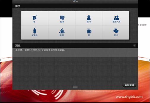 手机短信应用于设备超远程控制、会议通知、系统重要事件通知等功能。