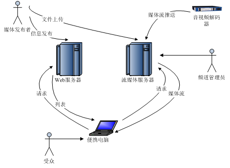 视频直播与点播端 | 网络用户可以使用Web客户端直播播放现场视频,点播视频服务器+文件服务器提供的视频内容。 |