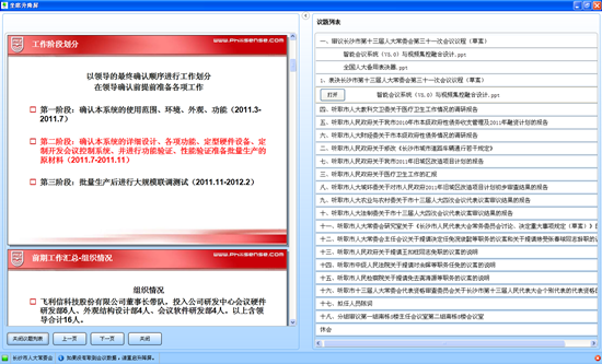 文件管理人员使用系统对会议议程中的每一项议题或子议题指定开始时间,形成会议日程,并通过WEB服务对外发布会议的日程信息。方便会务筹备工作人员查看阅读,传送相关文件等内容。如图所示: