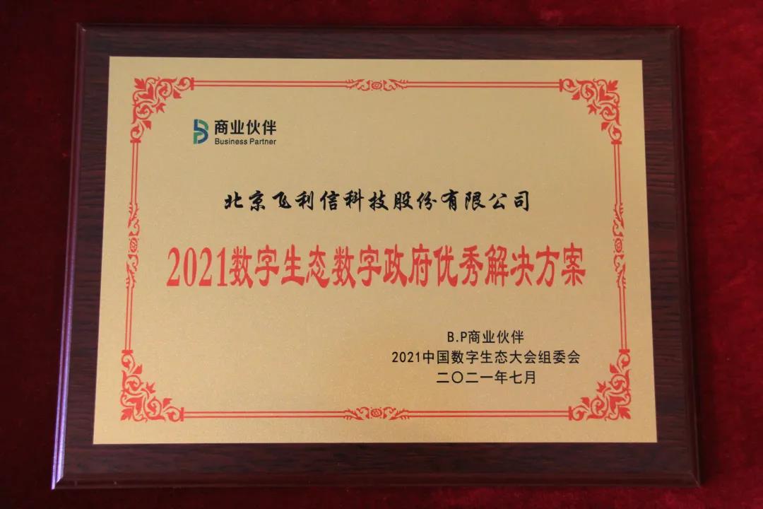 ▲飞利信荣获“2021数字生态数字政府数字政府优秀解决方案”